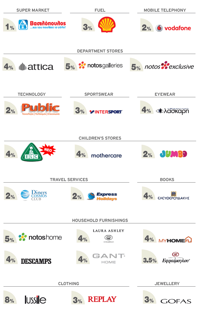 Participating Merchants and Rebate Percentages