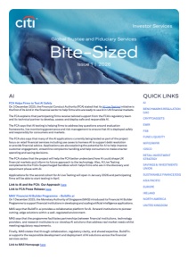 AI FCA Helps Firms to Test AI Safely On 3 December 2025, the Financial Conduct Authority (FCA) stated that its AI Live Testing initiative is the first of its kind in the financial sector to help firms who are ready to use AI in UK financial markets. The FCA explains that participating firms receive tailored support from the FCA’s regulatory team and its technical partner to develop, assess and deploy safe and responsible AI. The FCA says that AI testing is helping firms to address key questions around evaluation frameworks, live monitoring governance and risk management to ensure that AI is deployed safely and responsibly for consumers and markets. The FCA also says that many of the AI applications currently being tested as part of the project focus on retail financial services including use cases to harness AI to support debt resolution or provide financial advice. Applications are also exploring the potential for AI to help improve customer engagement, streamline complaints handling and help consumers to make smarter spending and saving decisions. The FCA states that the project will help the FCA better understand how AI could shape UK financial markets and inform its future approach to the technology. Also, AI Live Testing complements the FCA’s Supercharged Sandbox which helps firms who are in the discovery and experiment phase with AI. Applications for the second cohort for AI Live Testing will open in January 2026 and participating firms will be able to start testing in April. Link to AI and the FCA: Our Approach here Link to FCA Press Release here MAS’ Financial AI Builder Programme – Buildfin.ai On 1 December 2025, the Monetary Authority of Singapore (MAS) introduced its Financial AI Builder Programme to support financial institutions in developing and scaling artificial intelligence applications. MAS says that BuildFin.ai provides a collaborative platform for AI-forward institutions to pioneer cutting-edge solutions within a well-regulated environment. MAS says that the programme facilitates partnerships between financial institutions, technology providers, and research institutes to co-develop AI solutions that address real market needs whilst meeting regulatory requirements. Finally, MAS states that through collaboration, regulatory clarity, and shared expertise, BuildFin. ai supports the responsible development and deployment of AI solutions across the financial services sector. Link to MAS Homepage here Investor Services Bite-Sized Global Trustee and Fiduciary Services QUICK LINKS Issue 1 | 2026 AI BENCHMARKS REGULATION (UK) CRYPTOASSETS EMIR FSB FUND LIQUIDITY MIFID/MIFIR IOSCO RETAIL INVESTMENT STRATEGY SAVINGS & INVESTMENTS UNION SUSTAINABLE FINANCE/ESG ASIA PACIFIC EUROPE IRELAND NORTH AMERICA UNITED KINGDOM