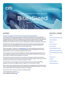 AIFMD Targeted Consultation on the EU Venture and Growth Capital Funds Reform On 15 January 2026, the European Commission (Commission) published two consultations to collect evidence and stakeholder feedback on the barriers to achieve scale and operate across the EU single market that arise from the application of the European Venture Capital Funds Regulation (EuVECA), the Alternative Investment Fund Managers Directive (AIFMD), and national legal frameworks for investment funds, as well as on possible policy measures addressing such barriers. The Commission says that, despite growth in recent years, the EU venture and growth capital ecosystem remains underdeveloped, and small and mid size fund managers face significant barriers to achieve scale and operate across the EU single market. Preliminary analysis, notably from an external study commissioned by Directorate General for Financial Stability, Financial Services and Capital Markets Union (DG FISMA), points at market fragmentation issues and unnecessary regulatory requirements. The consultations are comprised of a targeted consultation addressing key stakeholders such as fund managers, businesses, institutional investors as well as public authorities and supervisors, and a public consultation where anybody can contribute. The Commission says that input from the consultations will support its policy work under the Savings and Investments Union (SIU) and the startup and scaleup strategy, in particular the efforts to improve access to finance for innovative companies in the EU. The Commission says it envisages a review of the European Venture Capital Fund (EuVECA) Regulation under its SIU strategy, planned for adoption in the third quarter of 2026. With a view to maximising the impact on EU competitiveness and growth, the Commission says it is also considering a possible broader policy initiative beyond the EuVECA framework, which would cover a wider range of venture and growth capital fund managers. The period for both consultations is open until 12 March 2026. Link to Targeted Consultation here Link to Public Consultation here Investor Services Bite-Sized Global Trustee and Fiduciary Services QUICK LINKS Issue 2 | 2026 AIFMD BENCHMARKS REGULATION CRYPTOASSETS FINTECH FUND LIQUIDITY MIFID II/MIFIR MONEY MARKET FUNDS OPERATIONAL RESILIENCE SUSTAINABLE FINANCE/ESG T+1 ASIA PACIFIC EUROPE NORTH AMERICA UNITED KINGDOM